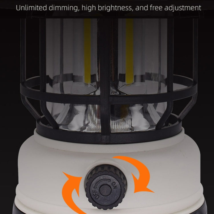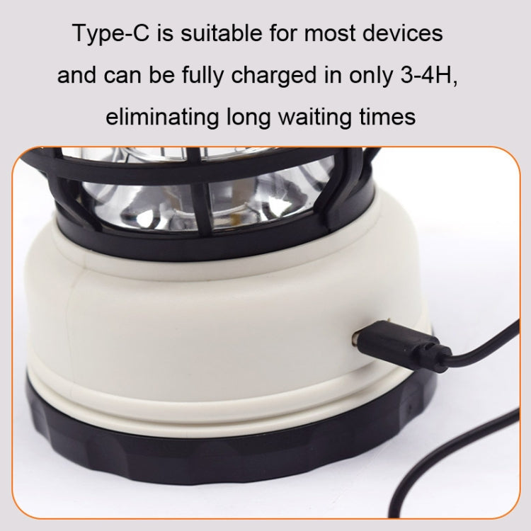 Retro Oplaadbare Campinglamp met Solar – Dimbaar & Lichtgewicht (Zwart/Wit)
